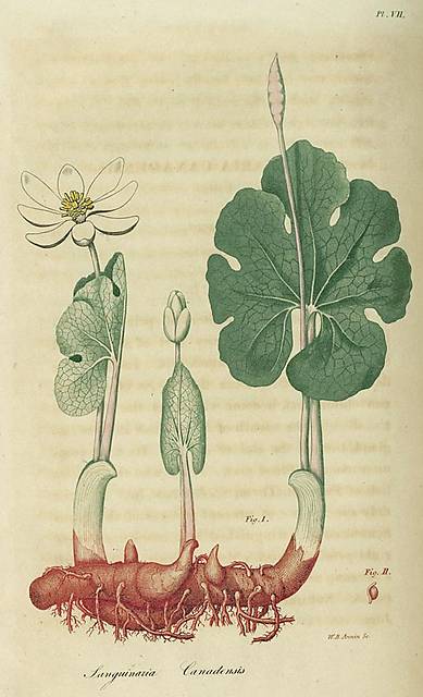This image is from Sanguinaria in American Medical Botany, Bigelow, 1817-1821.