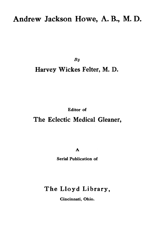 • ‹ Harvey Wickes Felter, M. D.