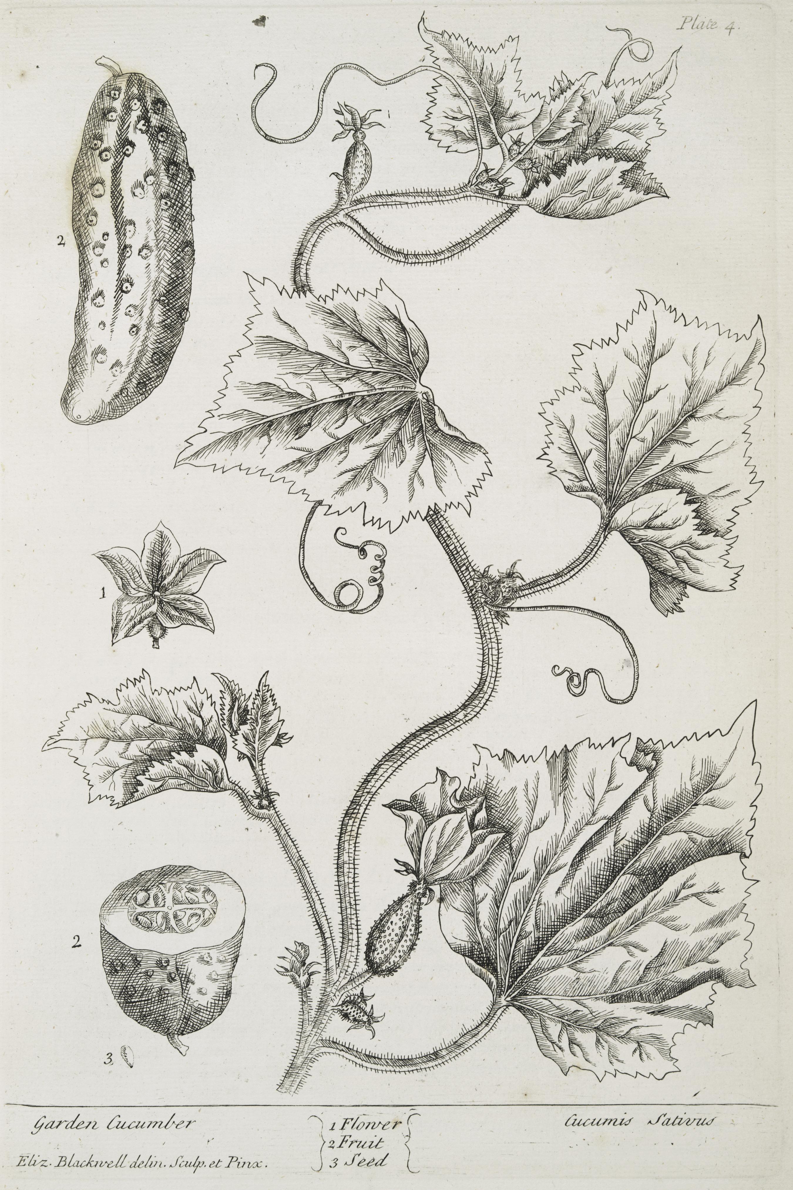 The text for this image is found on the page 001-004 Dandelion, Red Poppy, Mullein, Garden Cucumber. in A Curious Herbal, Elizabeth Blackwell, 1737 (Vol. 1), 1739 (Vol. 2).