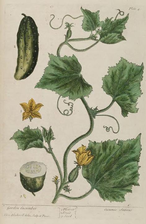 The text for this image is found on the page 001-004 Dandelion, Red Poppy, Mullein, Garden Cucumber. in A Curious Herbal, Elizabeth Blackwell, 1737 (Vol. 1), 1739 (Vol. 2).