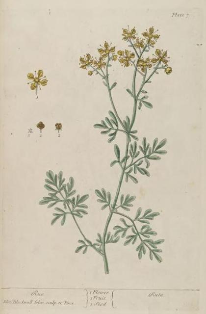 The text for this image is found on the page 005-008 Shepherd's Purse, Wild Tansie, Rue, Wild Rose. in A Curious Herbal, Elizabeth Blackwell, 1737 (Vol. 1), 1739 (Vol. 2).