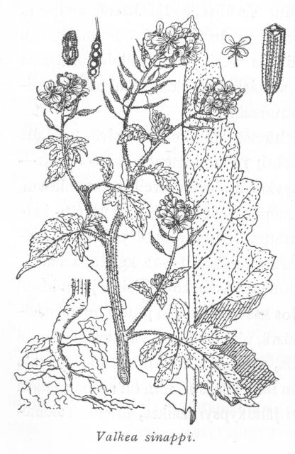 Tämä kuva on kirjasta Suomen myrkylliset ja lääkekasvit, 1936, sivu Valkea sinappi.
