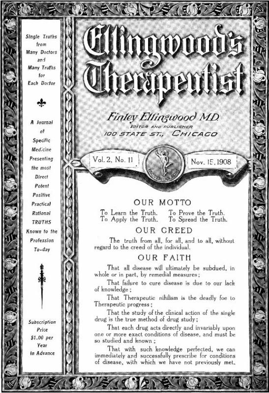 This image is from Title Page in the November issue of Ellingwood's Therapeutist, 1908.