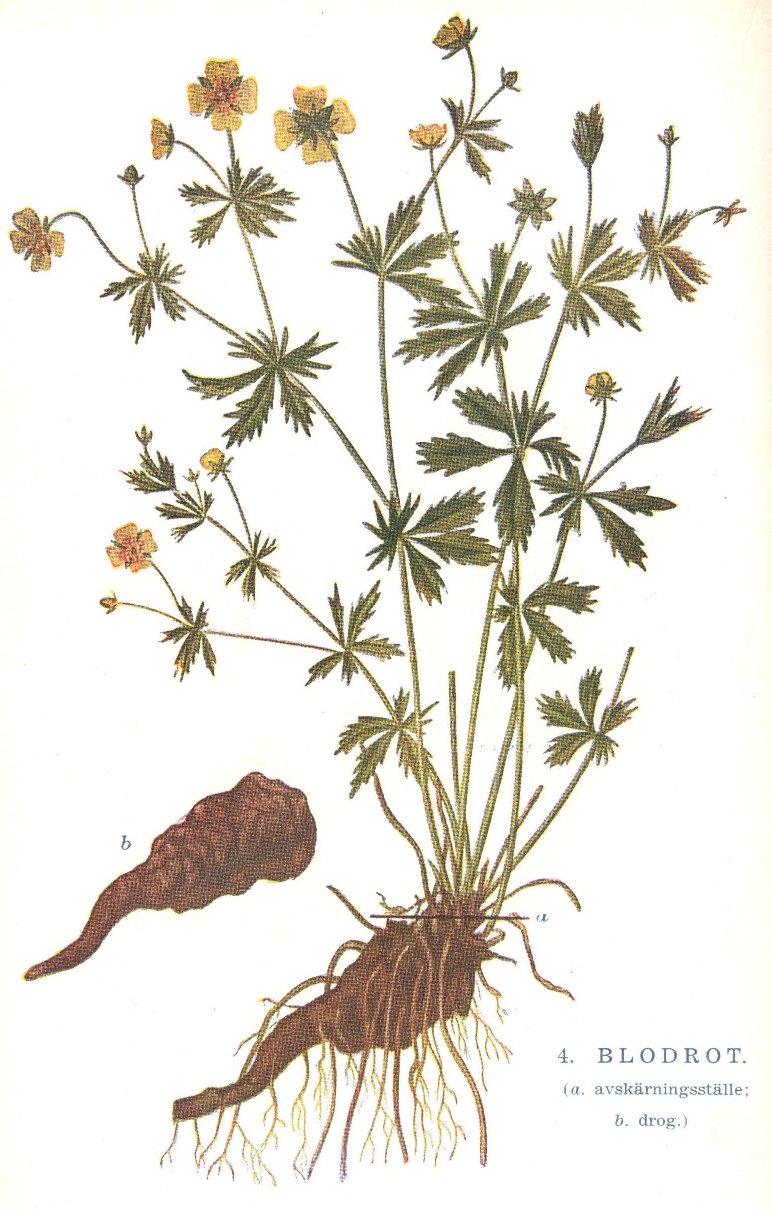 Denna bild är från boken Våra Medicinalväxter, 1940, sida Blodrot.