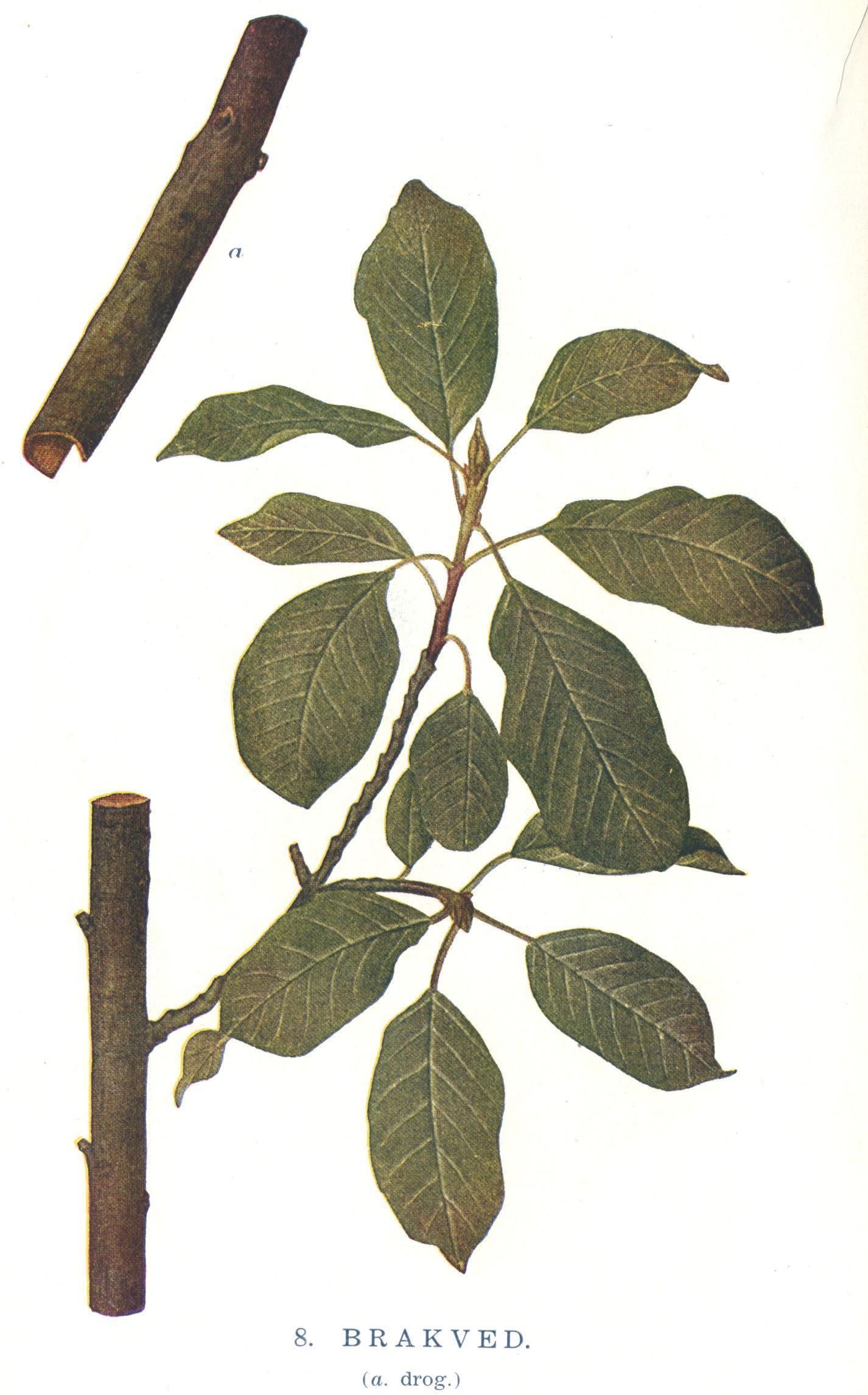 Denna bild är från boken Våra Medicinalväxter, 1940, sida Brakved.