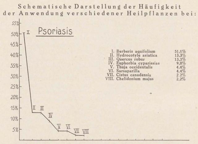 Schematische Darstellung der Häufigkeit der Anwendung verschiedener Heilpflanzen bei: Psoriasis