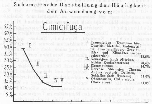 Schematische Darstellung der Häufigkeit der Anwendung von: Cimicifuga
