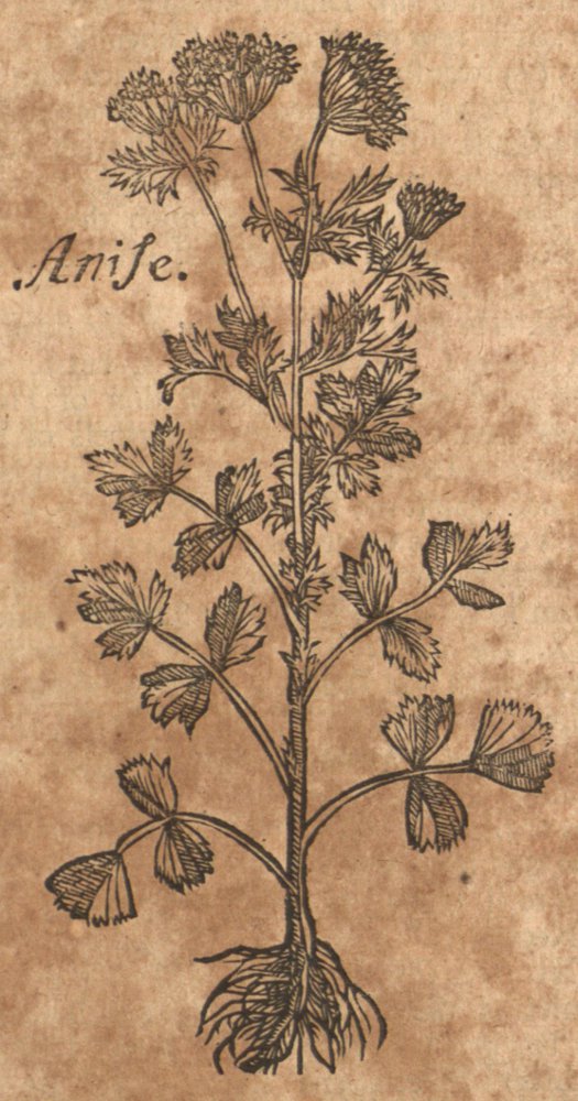 This image is from Chap. XVIII. Of Anise in Botanologia, Salmon, 1710.
