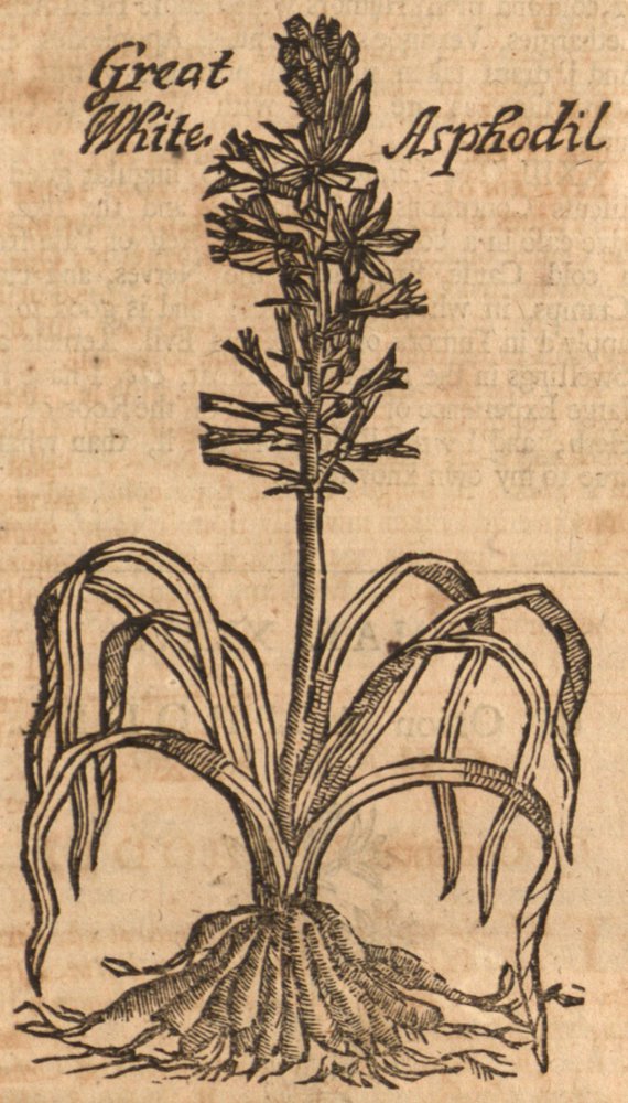 This image is from Chap. XXXV. Of Common Asphodel in Botanologia, Salmon, 1710.