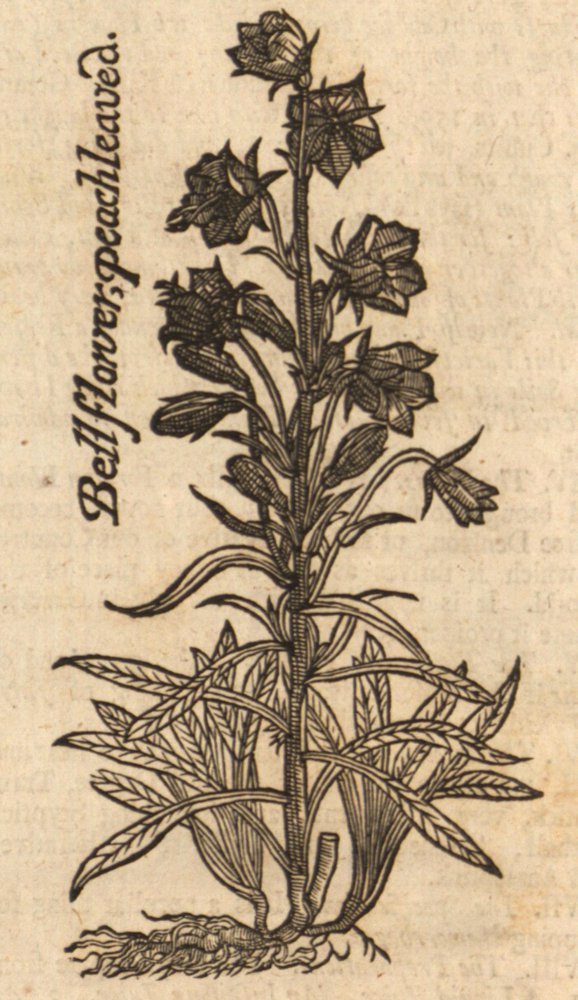 This image is from Chap. LXIV. Bell-flower Great in Botanologia, Salmon, 1710.