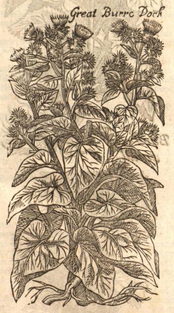 This image is from Of Burdock Great in Botanologia, Salmon, 1710.