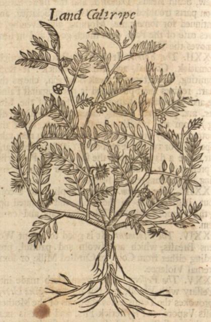 This image is from Caltrops, Land. in Botanologia, Salmon, 1710.
