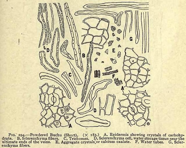 This image is from Drug Powders (also see Buchu) in Sayre's Manual of Organic Materia Medica and Pharmacognosy, 1917.