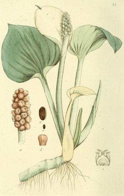 Denna bild är från boken Svensk Botanik, band 1, 1815, sida Calla palustris.