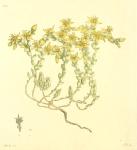 På berg, murar, tak, och torra sandiga ställen träffas denna gulgröna allmänna växt, som har mångårig rot och blommar i Juni och Juli. Örtstjelkarne uppväxa i små buskar, äro nedliggande, greniga, trinda och utan hår; bladen äro tryckta intill Örtstjelken. Blomknipporna, som sitta ensamma i toppen, ha få blommor. Blomfodret är något trubbigt och slätt; blombladen spetsiga. Fröhusen hinnaktiga och släta.