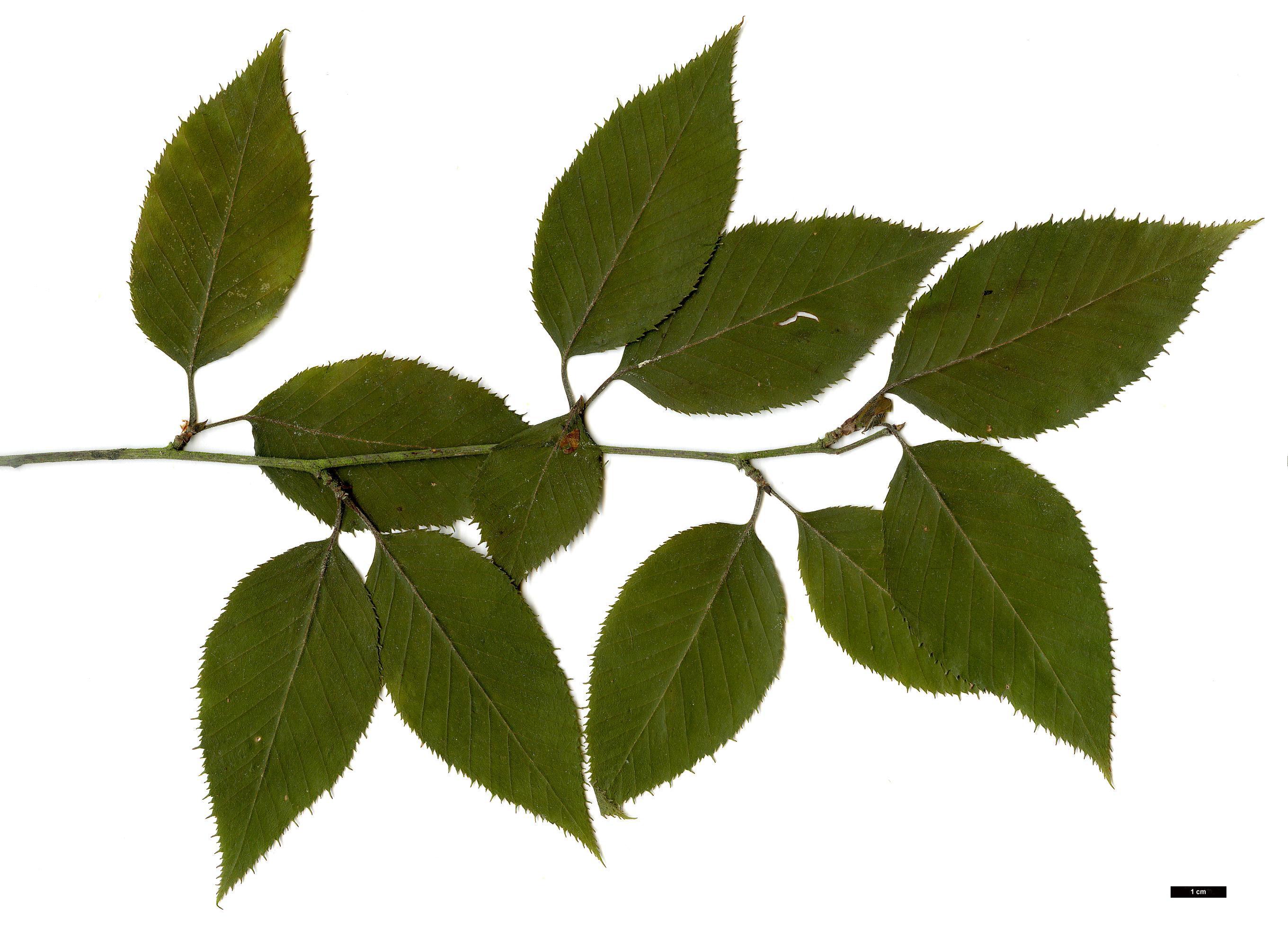 This image illustrates the Betula key. -01- Betula alnoides subsp. alnoides (JDL016385-MFOSTwld-08MAY2008) -ACUMINATAE/Acuminatae-