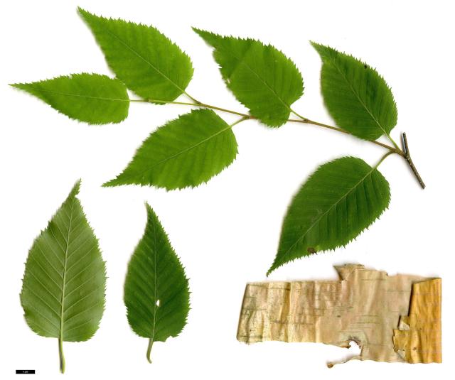 This image illustrates the Betula key. -60- Betula costata (JDL016400-AHW92047wld-25JUN2008) -BETULA/Costatae-