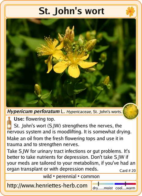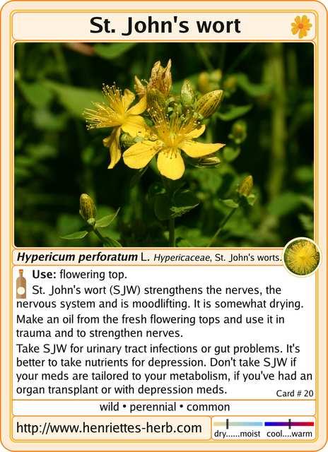 Gallery: Herb cardsRead more here. Henriette's herb cards: order yours here!The copyright information is here.. Book Navigation ‹ Herb card 20.2017, back: St. John's Wort. up Yrttikortti 01.2017: Sitrushedelmän kuori. ›