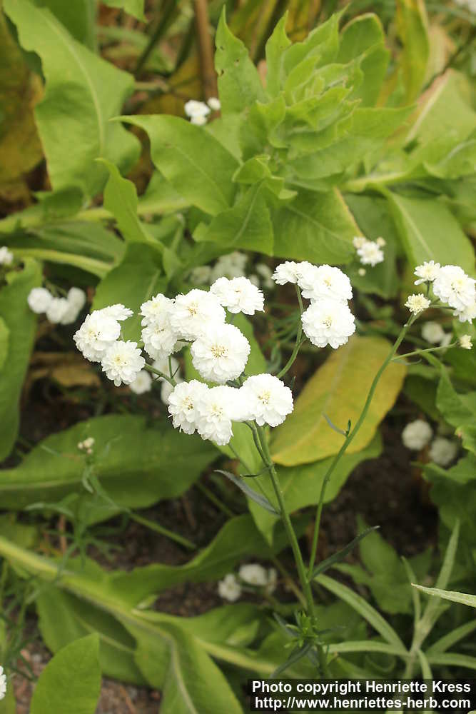 Gallery: Achillea ptarmica'Boule De Neige'. Bergianska trädgården, Stockholm, Sweden. Planted. 2012-07-05. Image ID: D12 6998 Book Navigation ‹ Photo: Achillea ptarmica 12. up Photo: Achillea ptarmica 14. ›