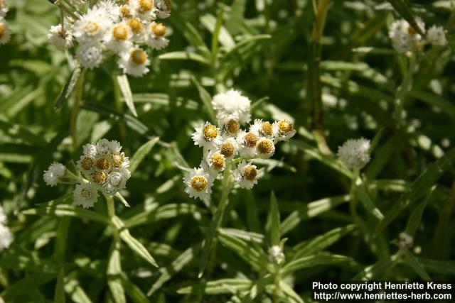 Engl.: pearly everlasting, pearl-flowered life everlasting, western pearly everlasting.