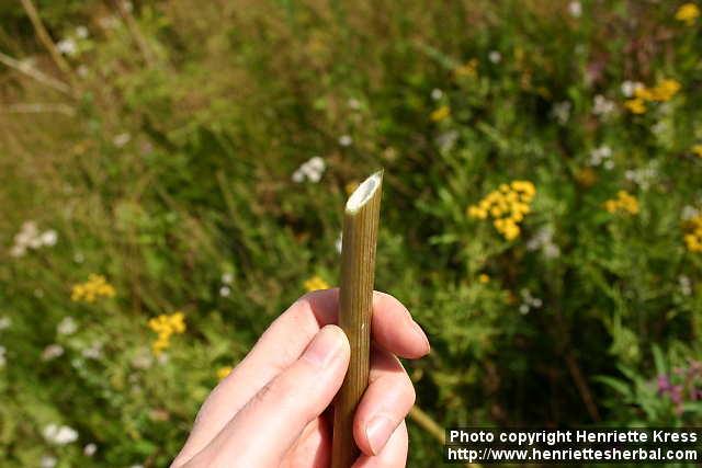 Making a whistling pipe: cut the stem in half with one diagonal cut. Ylästö, Vantaa, Finland. Picked. 2005-07-28.
