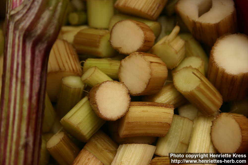 Flower stalk, peeled and cut up. Tapanila, Helsinki, Finland. Picked. 2010-06-09.