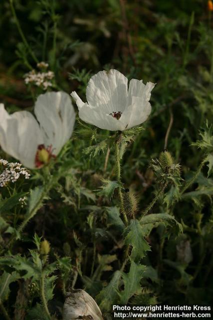 Engl.: southwestern pricklypoppy, white prickly poppy, cowboy's fried egg, crested-poppy, thistle poppy.