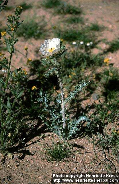Engl.: southwestern pricklypoppy, white prickly poppy, cowboy's fried egg, crested-poppy, thistle poppy.