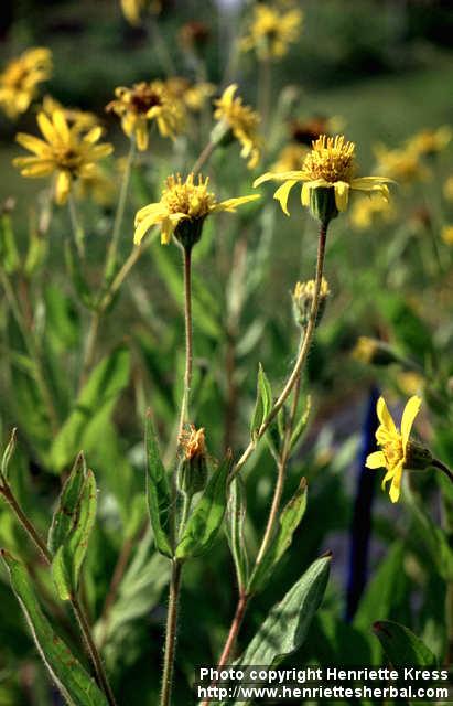 (Arnica whitneyi?) Flowers. MTT Karila research station, Mikkeli, Finland. Planted. 2002-08-13.