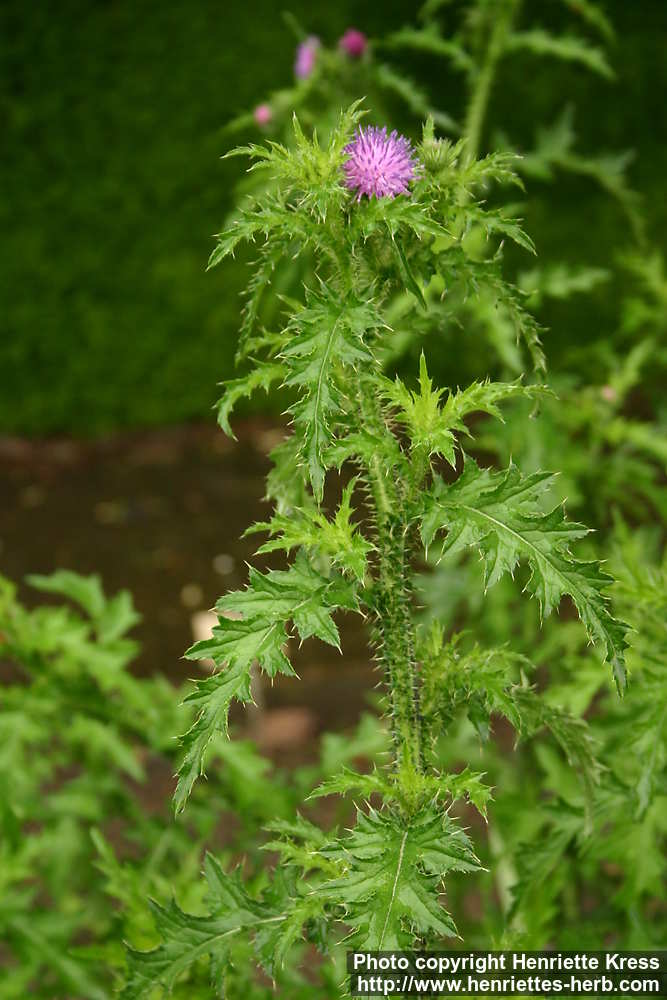 Engl.: curly plumeless thistle, curled thistle, welted thistle.