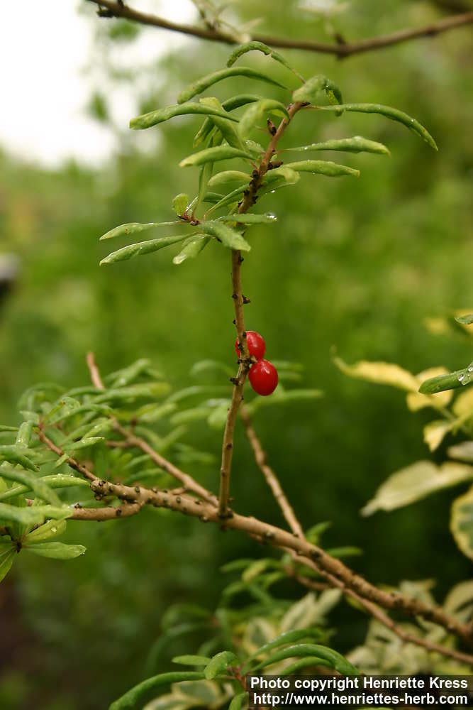 Two red berries. Gothenburg bot.g., Sweden. Planted. 2007-07-12.
