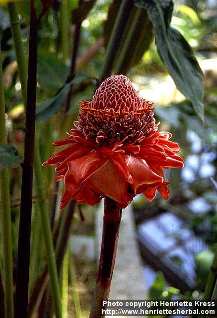 Engl.: red torch ginger, torch-ginger, pink torch ginger, pink tulip ginger.