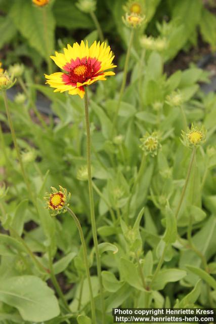 Flower, flowerbud, leaf. Bergianska trädgården, Stockholm, Sweden. Planted. 2012-07-05.