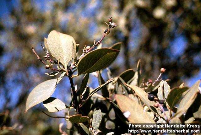 Closeup of branch with berries. Chiricahuas, AZ, US. Wild. 1998-04-01.