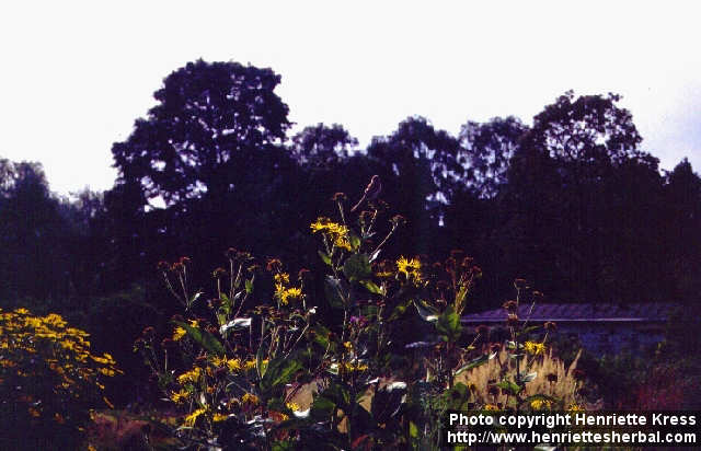 Engl.: elecampane, elf dock, horse elder, horseheal, scabwort, velvet dock, wild sunflower, yellow starwort.