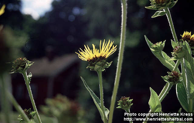 Engl.: elecampane, elf dock, horse elder, horseheal, scabwort, velvet dock, wild sunflower, yellow starwort.