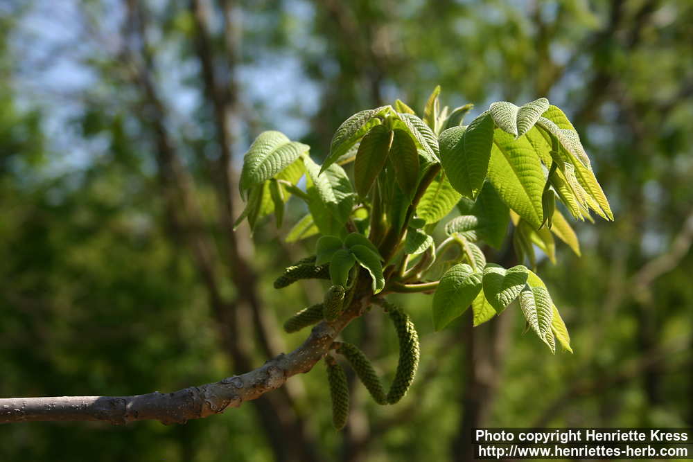 Young leaf and hanging male catkins. Botanical garden Kumpula, Helsinki, Finland. Planted. 2010-05-21.