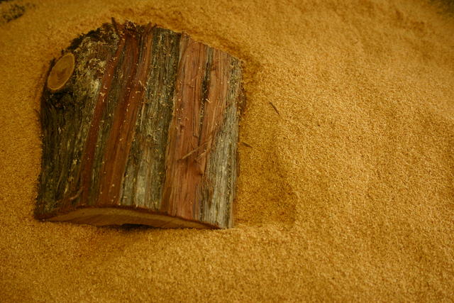 A piece of wood, and sifted sawdust. Vuokatti, Finland. Processed. 2006-09-19.