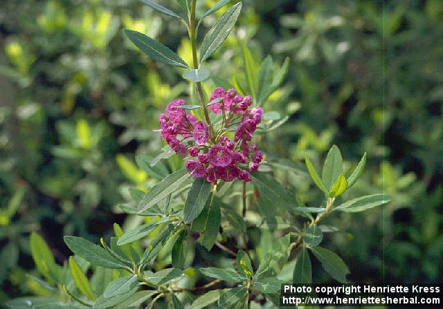 Engl.: sheep laurel, bitter tea, lamb-kill, narrow-leaved laurel.