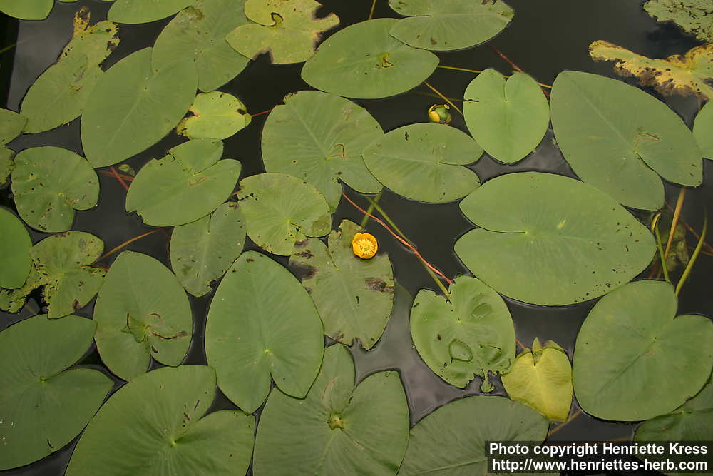 Bot. syn.: Nuphar advena (Ait.) Ait. f., Nuphar fluviatilis (Harper) Standl., Nuphar microcarpa (Mill. & Standl.) Standl., Nuphar ovata (Mill. & Standl.) Standl., Nuphar ozarkana (Mill. & Standl.) Standl., Nuphar puteora Fern., Nuphar x interfluitans Fern., Nymphaea advena Ait., Nymphaea chartacea Mill. & Standl., Nymphaea fluviatilis Harper, Nymphaea lutea L., Nymphaea macrophylla Small, Nymphozanthus advena (Ait.) Fern., Nymphozanthus ozarkanus (Mill. & Standl.) Palmer & Steyermark