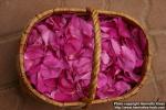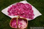 Rose petals in a basket and on a piece of cloth. Tapanila, Helsinki, Finland. Picked. 2010-06-30.