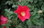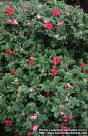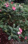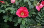 cv. Bush in flower: simple flowers, dark pink. Viikki rosario, Helsinki, Finland. Planted. 2002-06-12.