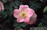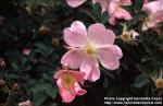 hybr. Branch in flower: large simple flowers, light pink. Viikki rosario, Helsinki, Finland. Planted. 2002-06-12.