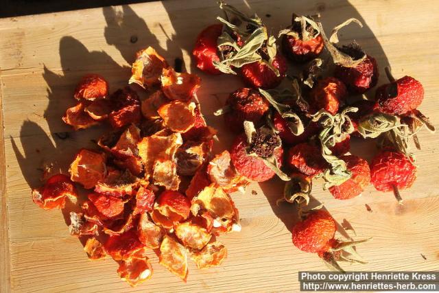 Dried rosehips. I cut up half and dried half whole. The cut up ones did better. A lot of the whole ones were moldy inside. Tapanila, Helsinki, Finland. Processed. 2010-10-18.