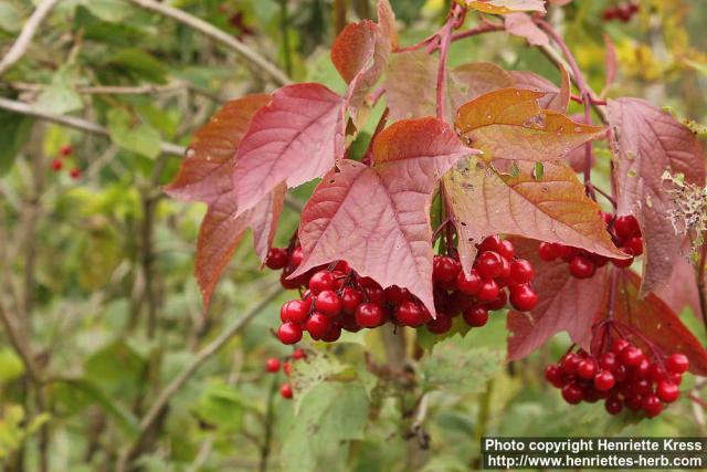 subsp. trilobum. Berry cluster and leaf. Botanical garden Kumpula, Helsinki, Finland. Planted. 2010-09-17.