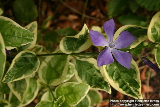 Engl.: bigleaf periwinkle, greater periwinkle.