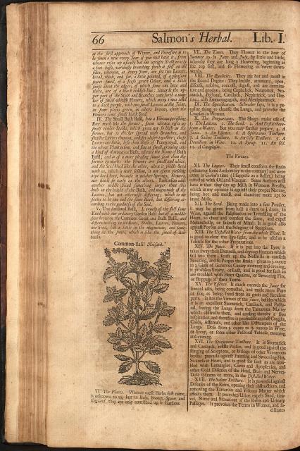 Gallery: Salmon 1710 ProofreadThis is a page to be proofread from Salmon's Botanologia, 1710. See Chap. 046. Of Common Basil. Book Navigation ‹ 00101 up 00103 ›