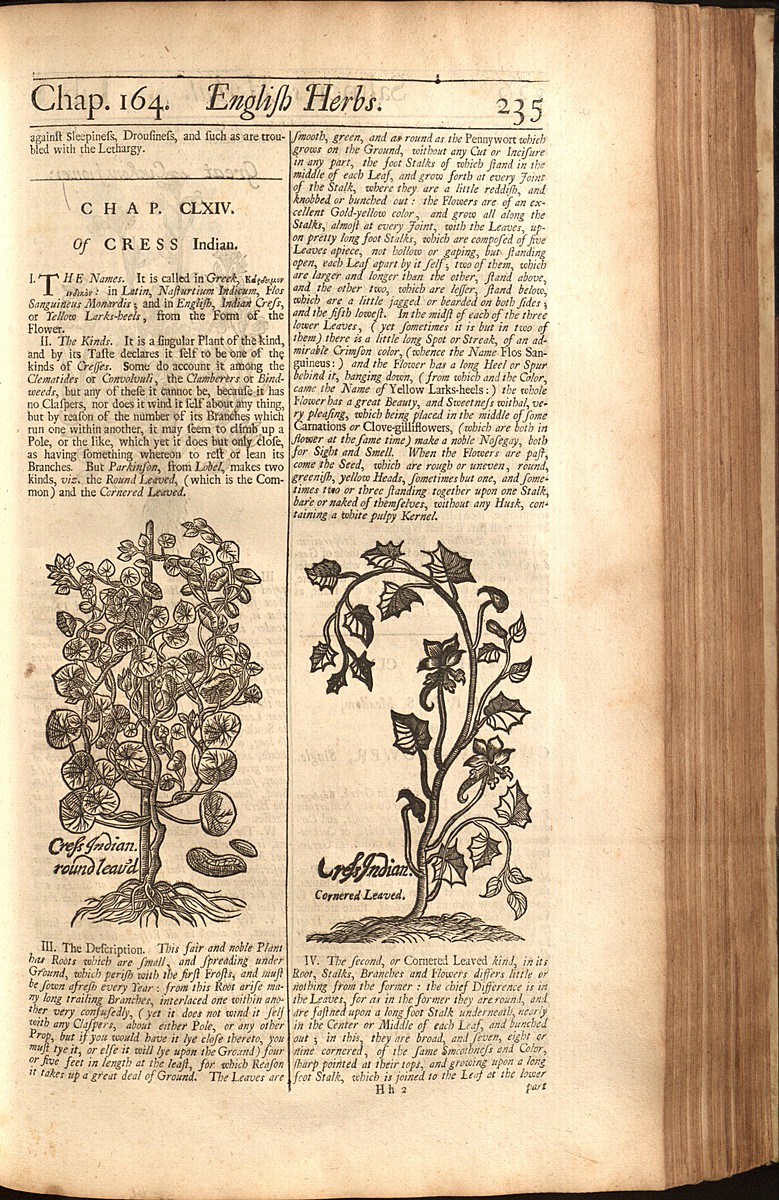 Gallery: Salmon 1710 ProofreadThis is a page to be proofread from Salmon's Botanologia, 1710. See Chap. 163. Of Cress Garden. See Chap. 164. Of Cress Indian. Book Navigation ‹ 00270 up 00272 ›
